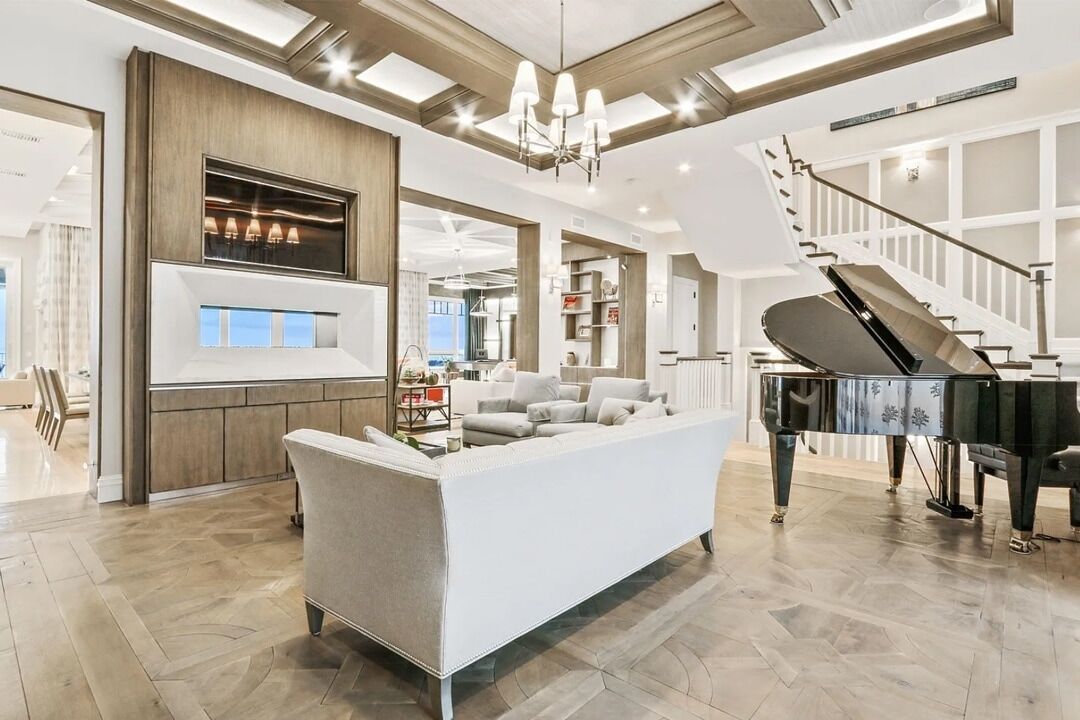 Elegance at its finest! This Ultra luxurious "Smart Home" is completely custom w/ the finest of features and upgrades you would expect. Upper & lower levels have Pub room, Wine room, Yoga & Massage room, Loft living room, Game room w/wet Bar, Spa room w/Sauna, Butler's Pantry, custom Office w/River Views, Full-Service outdoor summer Kitchen w/Fireplace, Pool, Sun Deck/Spa. Interior upgrades include a dual-sided Gas Fireplace, Wine Cooler, and Bev. & Expresso station, Carrara Marble, Quartzite and Porcelain throughout, Imported French Oak wood flooring with Maple inlays, all rooms & En-Suites are elegantly furn. & enhanced w/Water views, custom lighting, custom closets, silk window treatments & plantation shutters. This home is built Solid w/ Marine Grade materials & is situated in a Private gated comm. There is a Potential for a Private Marina in the near future and some slips will have the ability to house a 50ft boat.